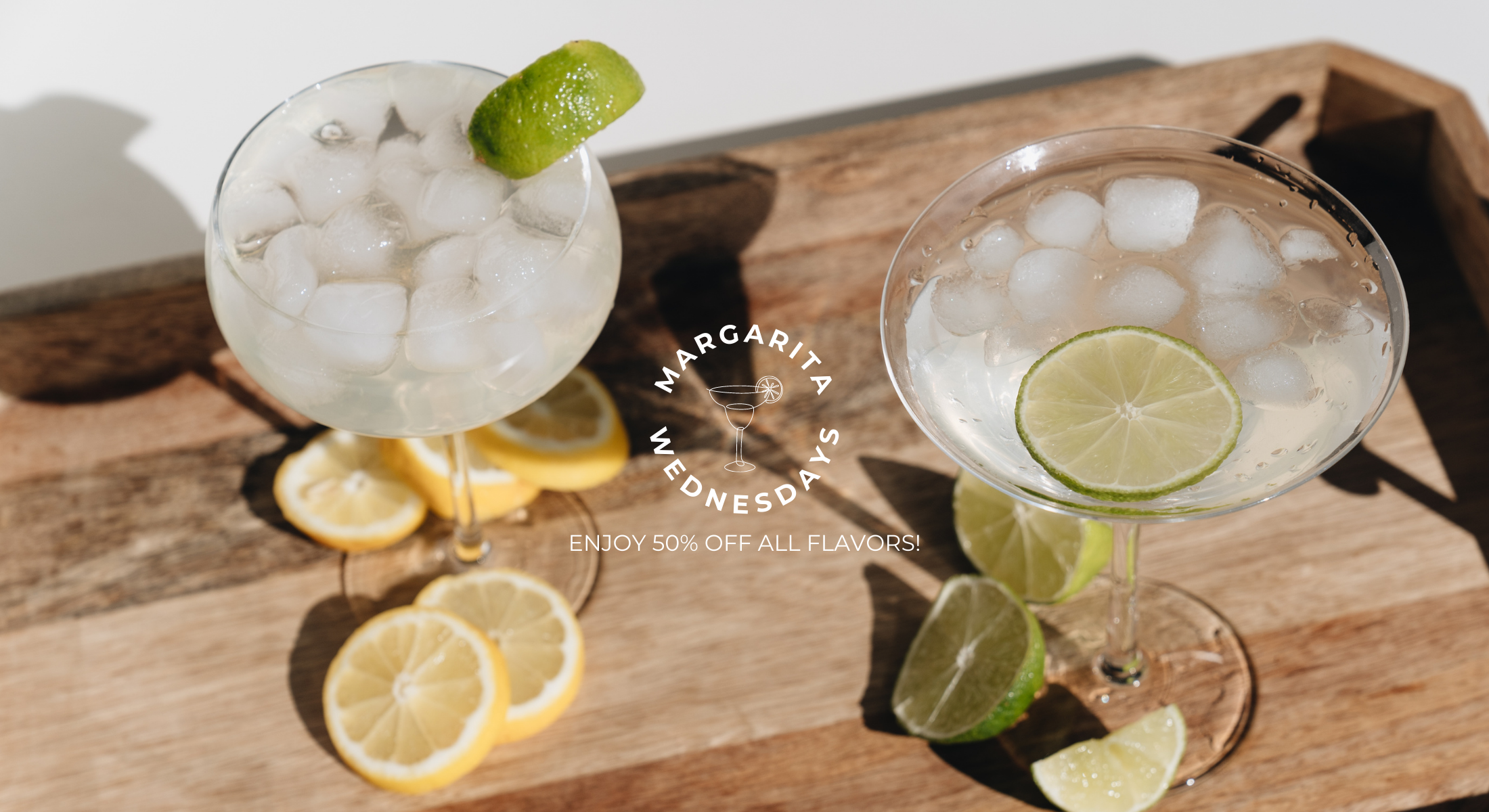 Every Wednesday from 11AM to 10PM, you can enjoy 50% OFF all of our delicious handcrafted margaritas.